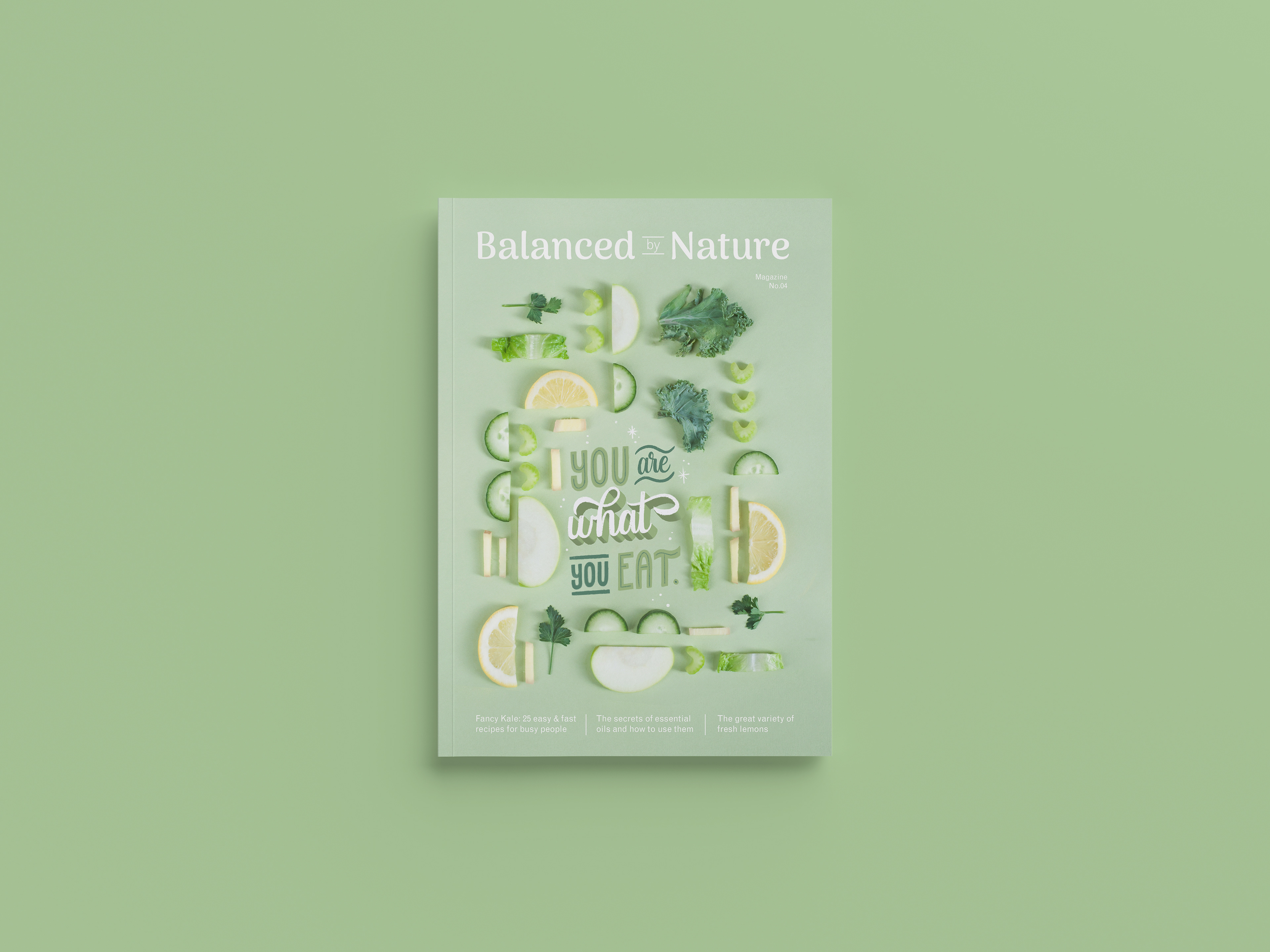 Cover page lettering for Balanced by Nature. A fictional magazine.