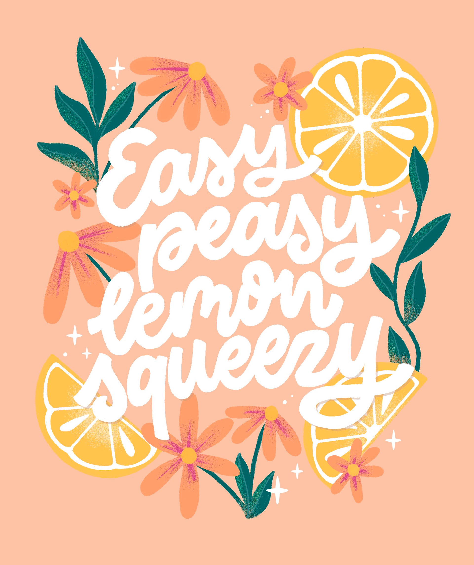 Easy peasy lemon squeezy, positive quote. Hand lettering drawn in Procreate.